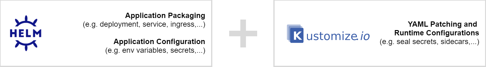 Kein Paket-Manager: Leichtgewichtiges Tool zum Anpassen von K8s-YAML-Dateien. Verteilung von Anwendungspaketen ist nicht im Scope.